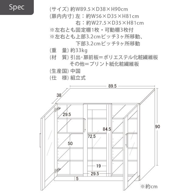 【商品サイズ】約 横89.5×奥行38×高さ90cm