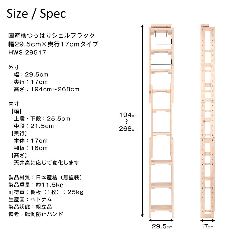 幅29.5cm×奥行17cm×高さ194cm~268cm