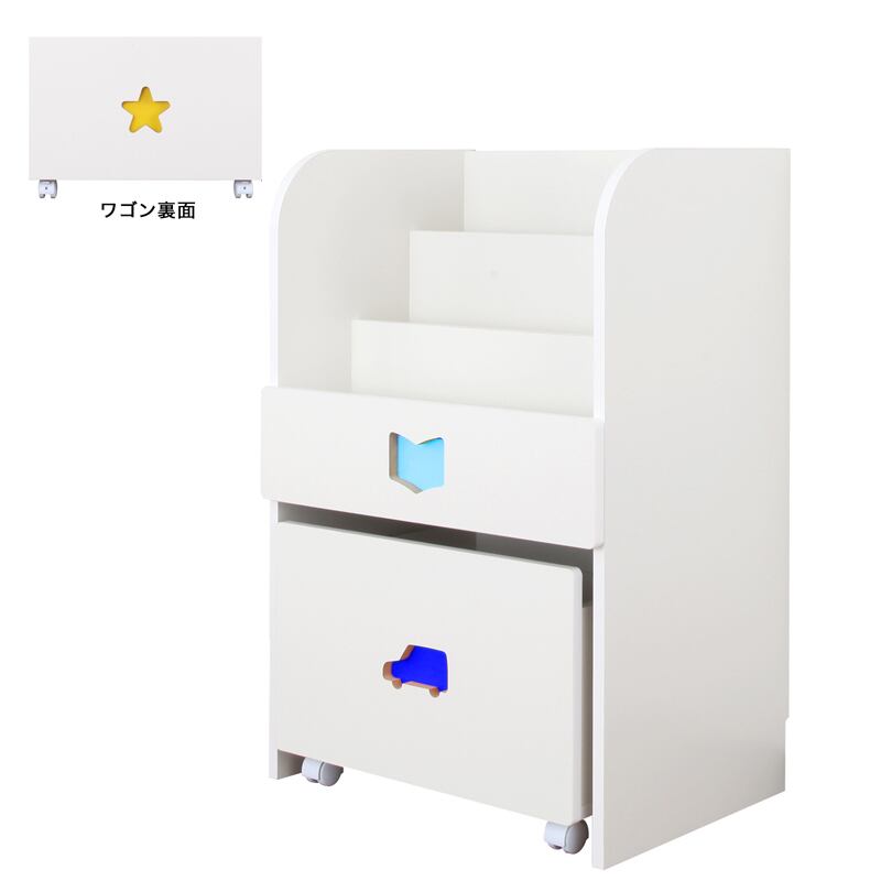 お子さまが楽しみながらおかたづけできるワゴン付マガジンラックです。