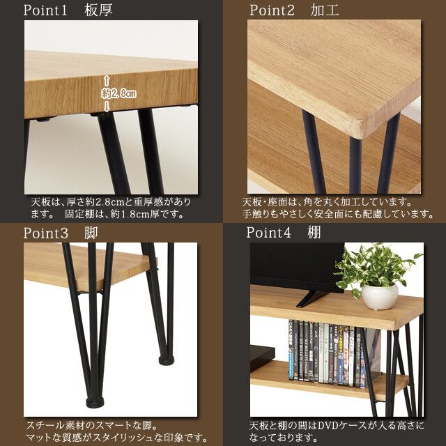●木目調とスチールの組合せがスタイリッシュなテレビ台。