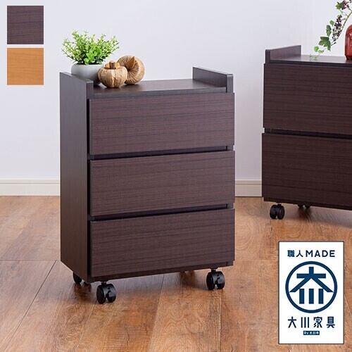 大川産 職人が作るワゴンチェスト 2段 ナチュラルウッド