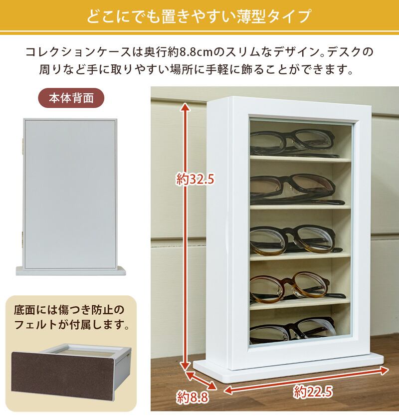 スタイルに合わせてメガネをチョイスするには、個々のケースではなく一目瞭然のコレクションケースが役立ちます