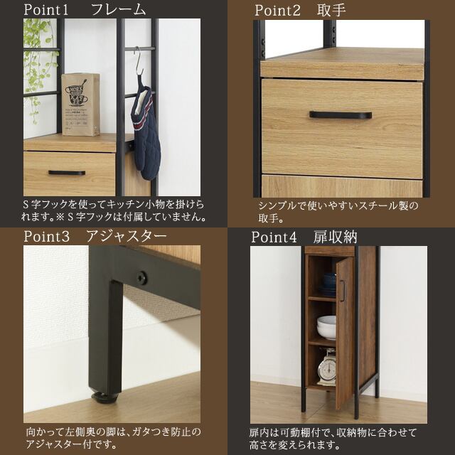 ●フレームはスチール製でキッチン小物を引っ掛けることができます。(フックは付属しておりません。)