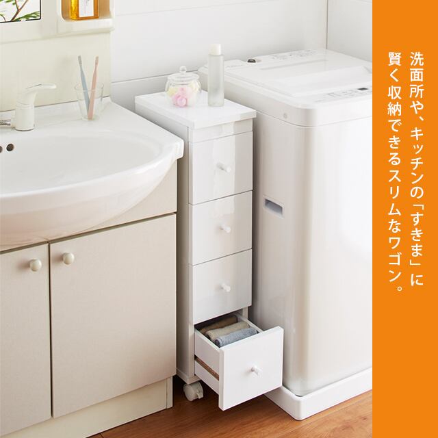 キッチンや洗面所のすきまに収納できる、スリムなワゴン。キャスター、取手を取り付けるだけの完成品!