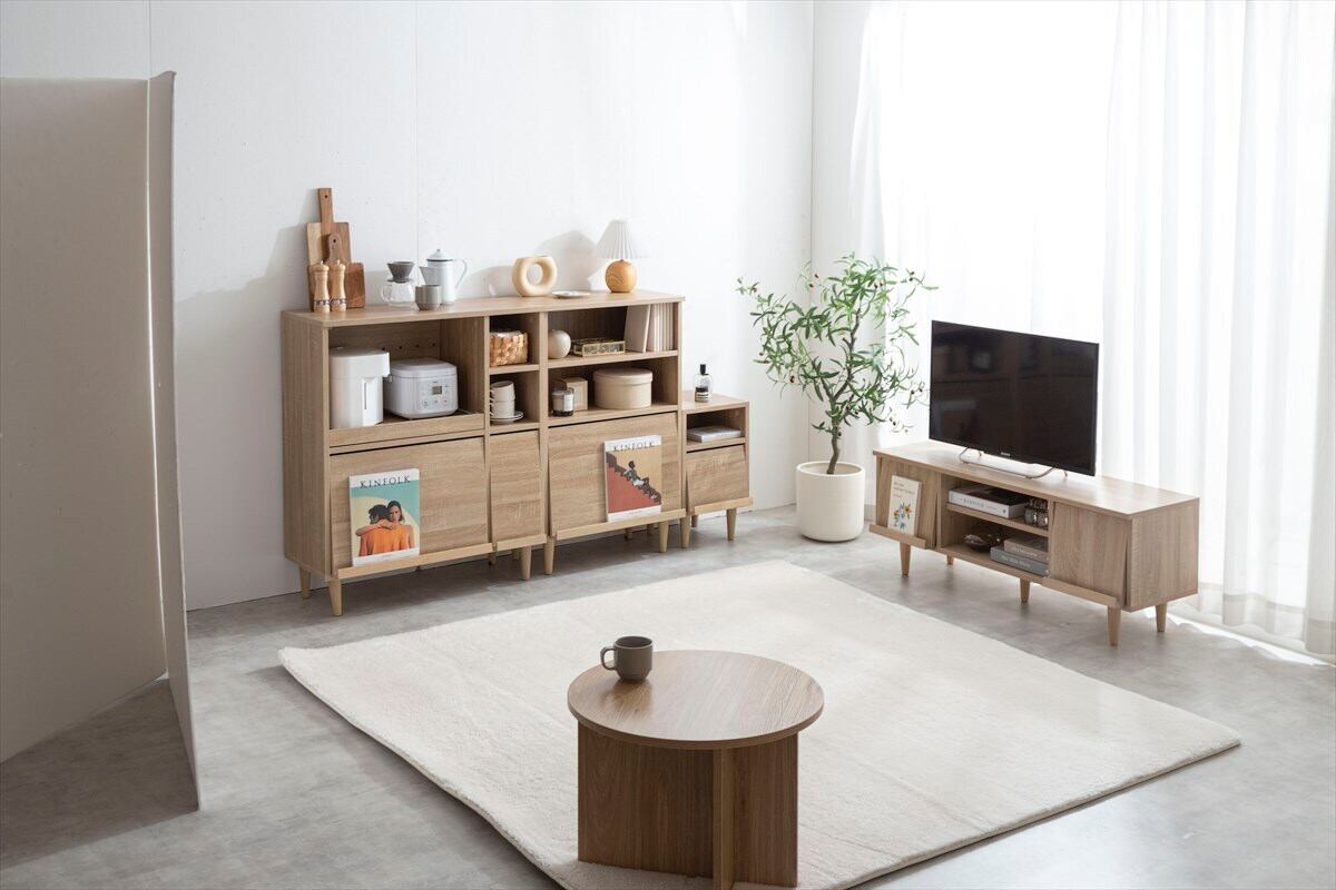フラップ扉で生活感を隠して、おしゃれに魅せる『Tony(トニー)』のサイドキャビネット