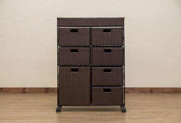 水や汚れに強い人工ラタンのカゴは通気性にも優れているため、タオルや着替えの収納に役立ちます