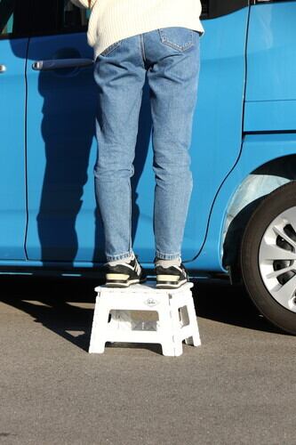 サッと広げればどこでも使える、便利な折りたたみステップスツールです。