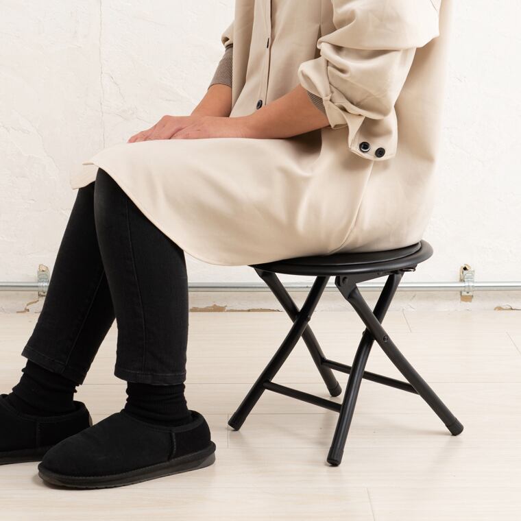 座面が低く座りやすい折りたたみイス 椅子 丸椅子 チェア 1人掛け スリム 軽量 黒