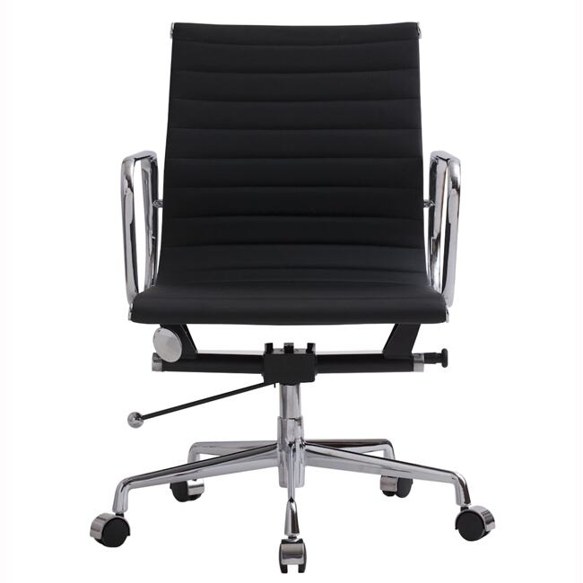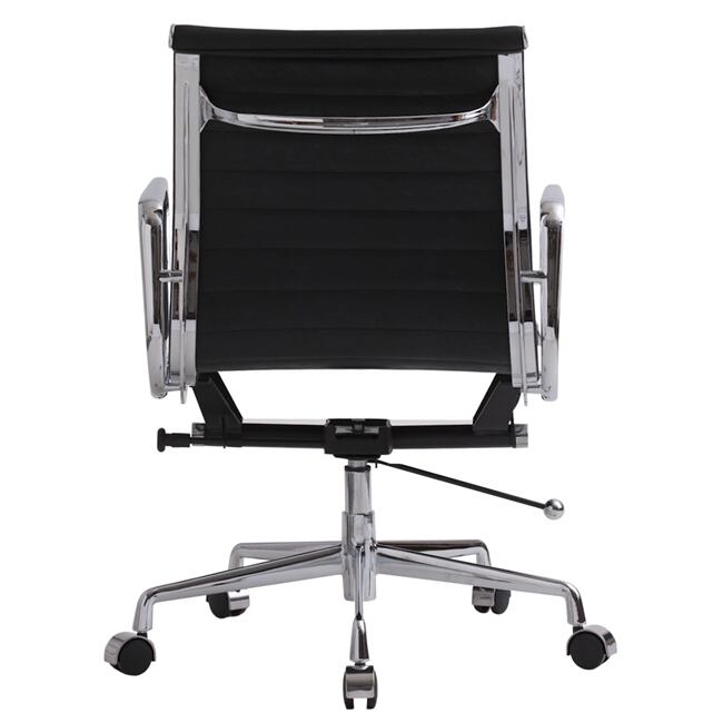 <商品について> ミッドセンチュリーを代表するチャールズ&レイ・イームズのアルミナムオフィスチェアです。当時の製品は、チルト機構(前後に傾く)でした。本製品は高さ調節機構がついており使いやすくなっています。チャールズ・イームズがラウンジチェアを期に、重量を軽減する為のアルミニウムを採用し、安定性を向上させるため5本足のデザインを取り入れましたが、この頃にアルミダイキャスト大量生産技術の開発され、実現した製品なのです。フレームは、すべてアルミダイキャストにクロームメッキを施しています。