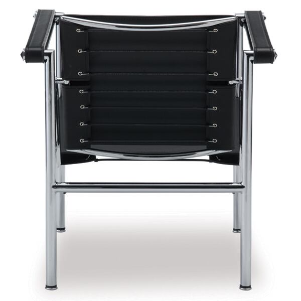 20世紀最も偉大な近代建築の巨匠 ル・コルビジュエの作品“LC1スリングチェア”です。 機械主義のコルビジェが最小限のスペースで最大限の安楽性を追求し誕生したデザインチェアです。この椅子の背もたれは、座った人の姿勢に合わせて回転して動くよう設計されており、リクライニングチェアとしての機能も配慮されています。コルビジェの家具を代表する傑作です。 LC1スリングチェアの毛皮タイプは、ヴィル・ダヴレのヴィッラ・チャーチ(チャーチ家別荘)の為にシャルロット・ぺリアン監視下、子牛の毛皮を使用し、目の方向までこだわって作られました。この椅子の名前(スリング)から分かるように背面部分が固定されておらずフレームがから繋がる一本の軸によって支えられています。よって座る人に合わせて背面が傾くのもこの作品の一つの面白さと言えるでしょう。小ぶりな椅子ながらその精密性やデザイン性が存在感を発揮し、空間のアクセントとして重宝される一脚です。