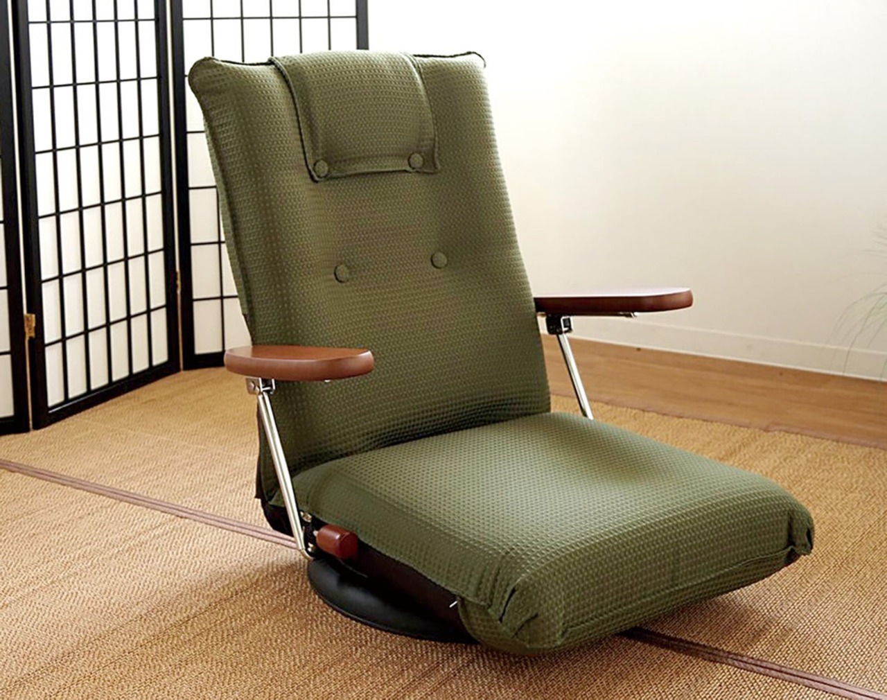 日本製 ひじ付き回転座椅子(座ったままリクライニング)