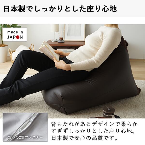 ビーズクッション ソファ レザー 日本製 三角 背もたれ 軽量 取っ手付き クッション 1人掛け