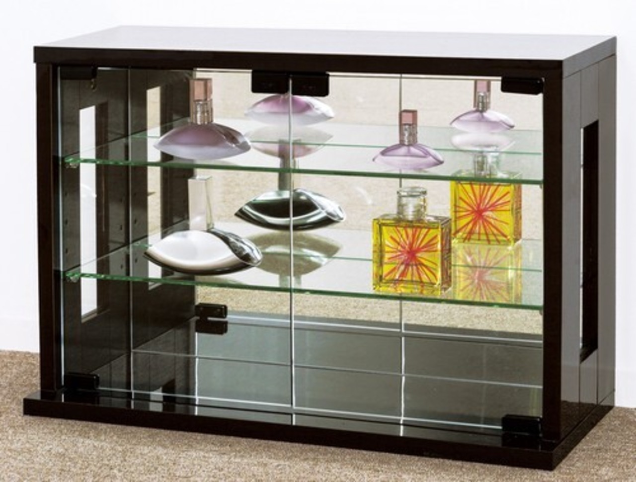 ●お気に入りのコレクションを美しくディスプレイできる背面ミラー貼りの2色から選べる卓上コレクションケース。