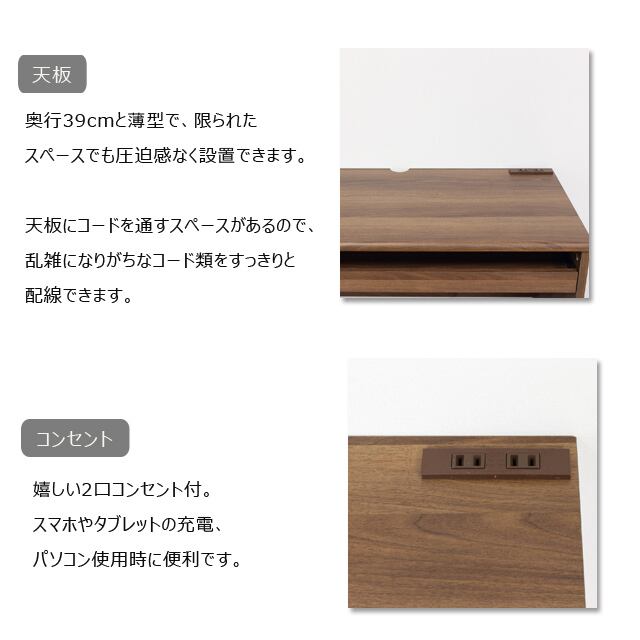 ●天板にコードを通すスペースがあるので、コード類をすっきりと配線できます。
