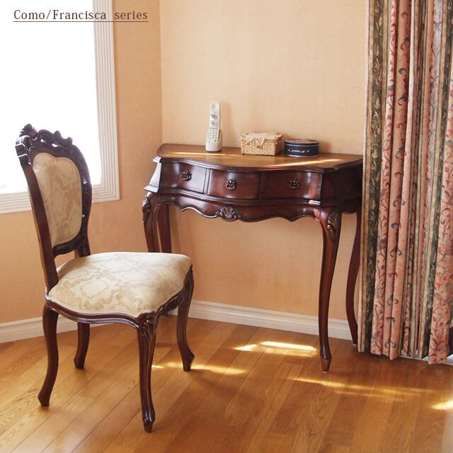 【コモ シリーズ】天板はレザー調の特殊な仕上げになっており、高級感があります。また猫脚も特徴的です。