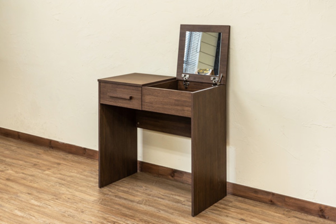 ミラーを開けばドレッサーに、閉じればデスクとして使える便利なアイテムです