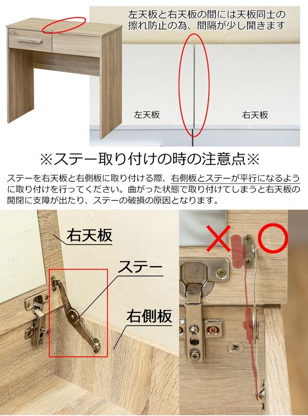 開閉式ミラーで普段はデスクとして使い、メイク時のみドレッサーとして使うことが出来ます