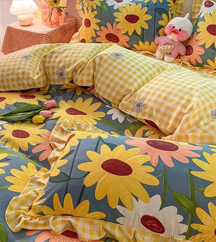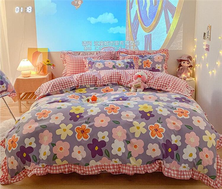 1.5m キルトカバー200*230cm、ベッドスカート150*200cm、枕カバー48*74cm*2(4点セット)