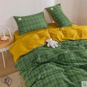 北欧 格子縞 シンプル ベッドシート 4点セット キルトカバー ベッドの笠 3点セット 高品質 トレンド 気質 サイズ:1.8m(ベッドシーツ:4点セット) カラー:図色4 | くらしSMILE SHOP