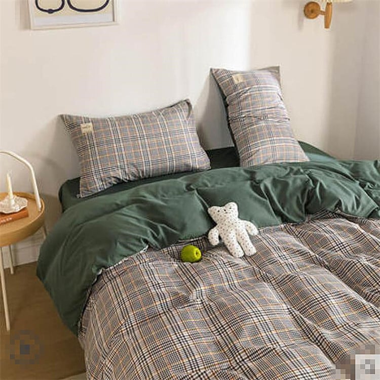 北欧 格子縞 シンプル ベッドシート 4点セット キルトカバー ベッドの笠 3点セット 高品質 トレンド 気質 サイズ:2.0m(ベッドシーツ:4点セット) カラー:図色5 | くらしSMILE SHOP