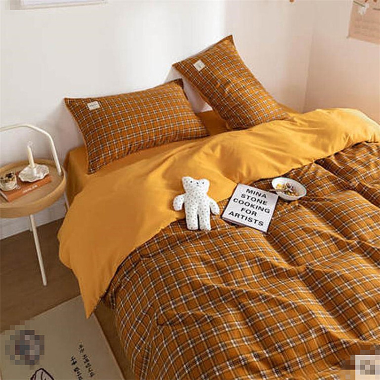 北欧 格子縞 シンプル ベッドシート 4点セット キルトカバー ベッドの笠 3点セット 高品質 トレンド 気質 サイズ:1.8m(ベッドシーツ:4点セット) カラー:図色15 | くらしSMILE SHOP