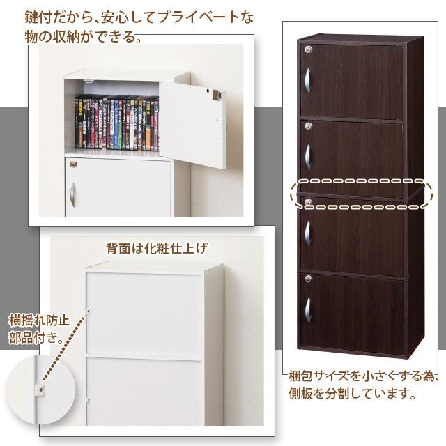 【ポイント】●全段鍵付き(すべて共通鍵)●背面は化粧仕上げ。●ホワイト、ブラウンの2色からお選び頂けます。