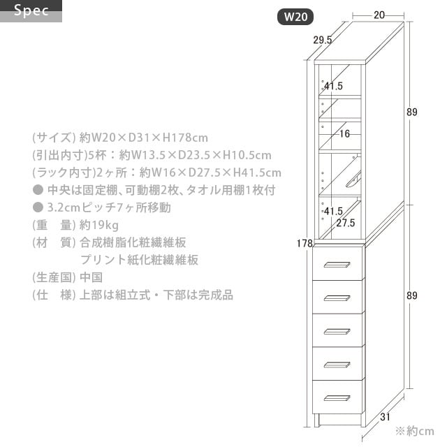 【商品サイズ】約 横20×奥行31×高さ178cm