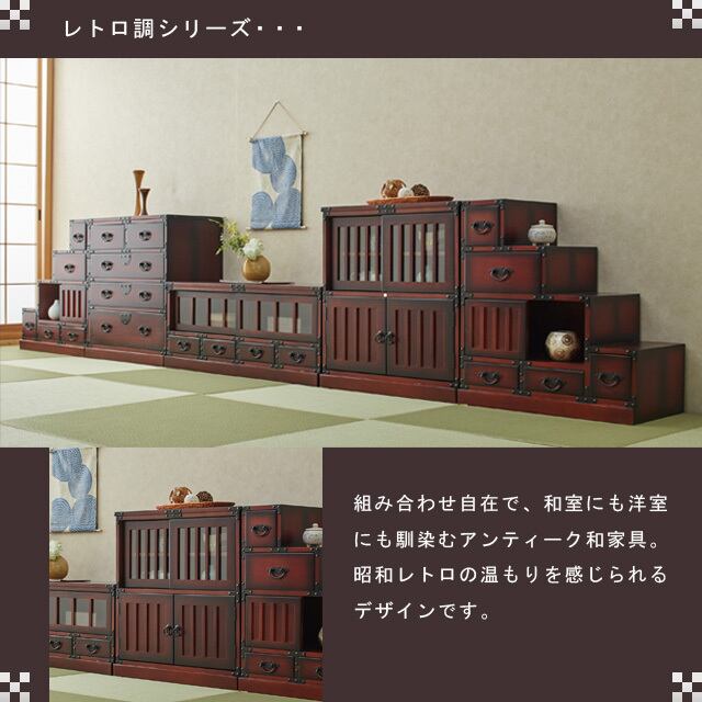 ●小ぶりタイプのどこか懐かしいレトロ調箪笥。
