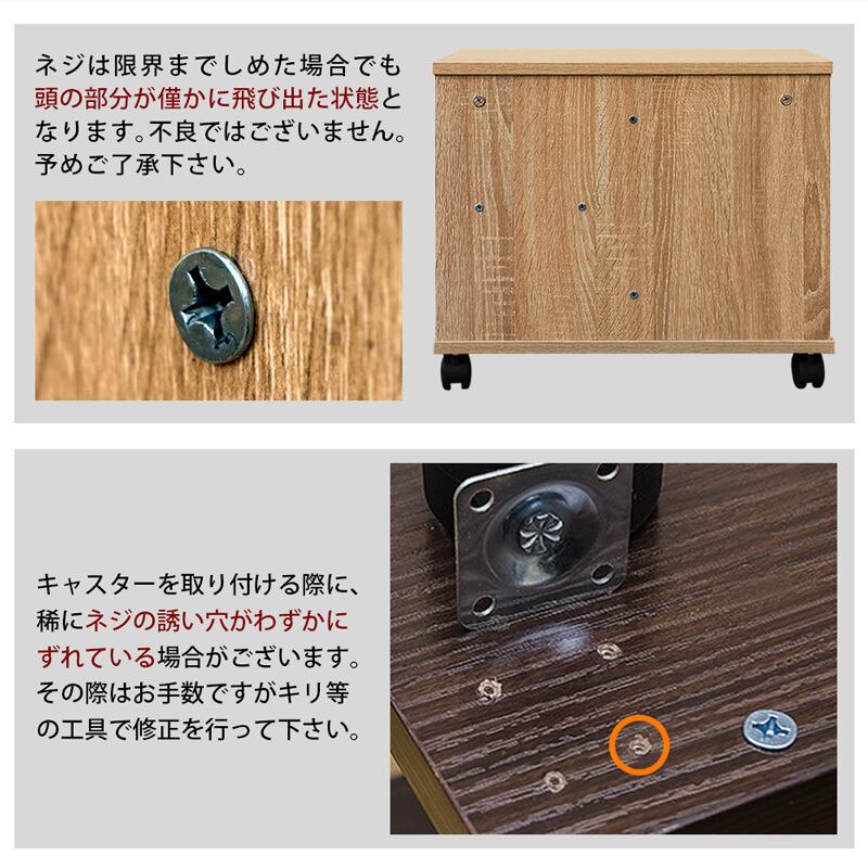 また、キャスターを取付ける誘い穴(目印程度の小さい穴)の位置がズレている場合があります