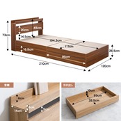 たっぷり収納付きベッド。便利な引出し収納が付いたシンプルなデザインの収納付きベッド。