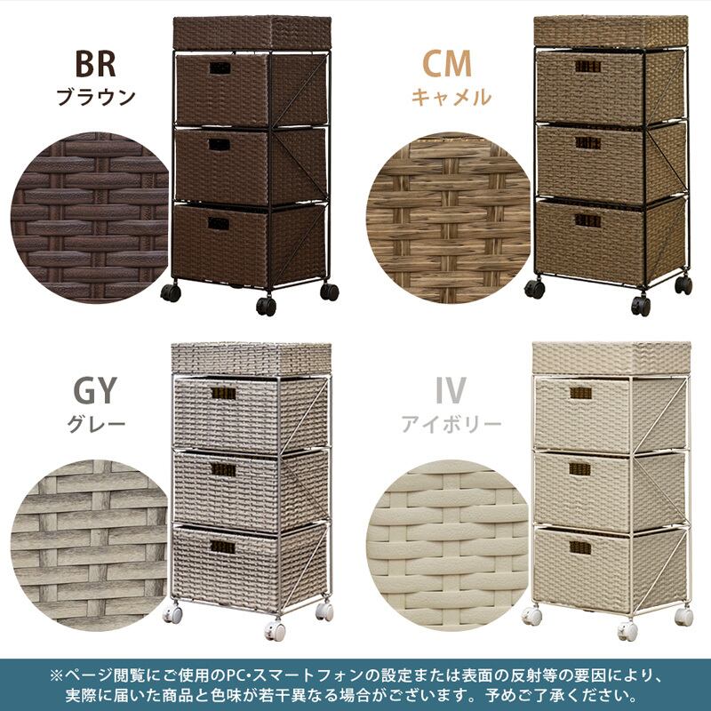 (S140)TME-08GY★(2.7)ラタン調 チェスト 3段 GY
